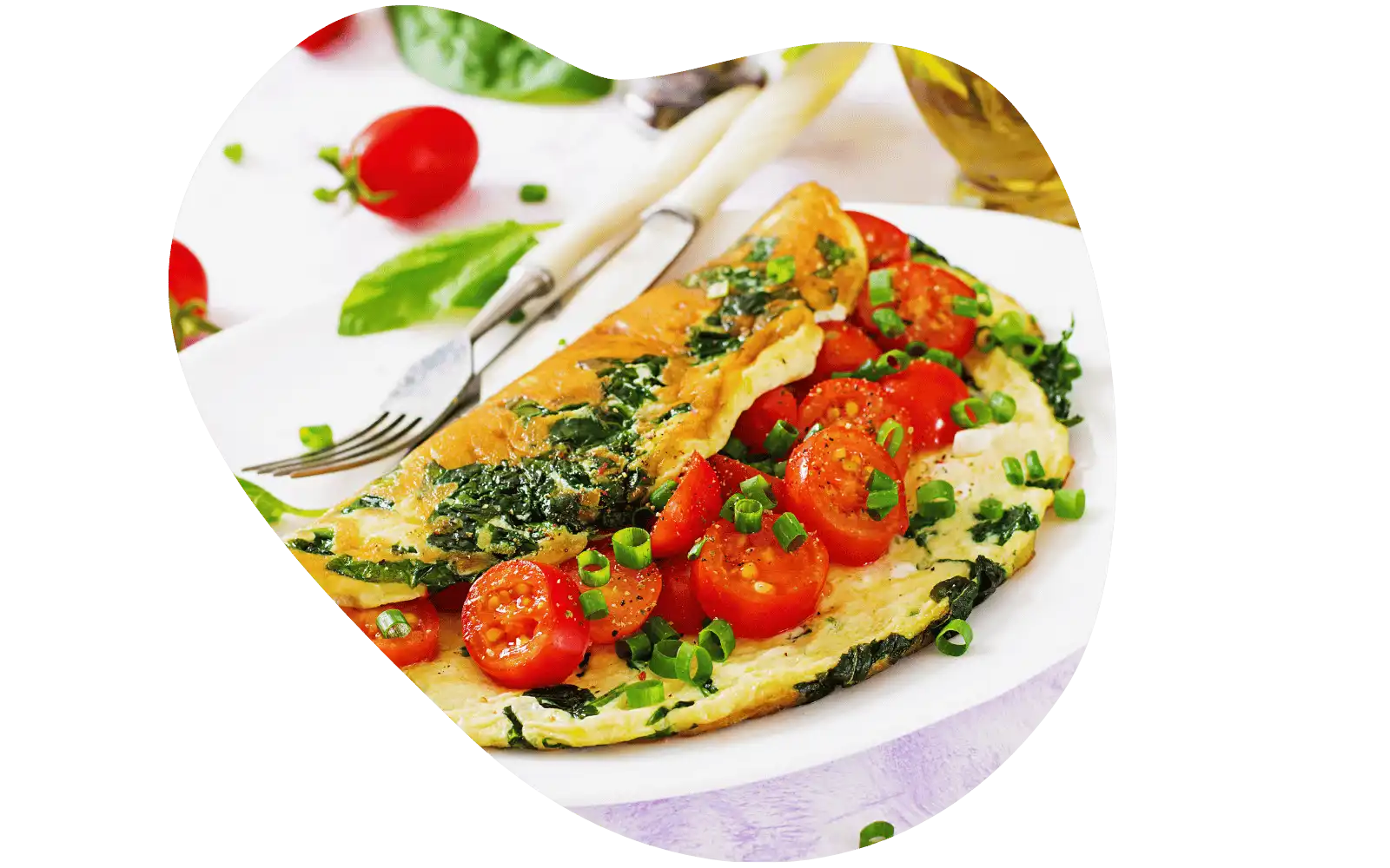 Visp eggene sammen, tilsett hakket grønnsaker og eventuelt revet ost. Stek blandingen i en panne til omeletten er fast. Server med en skive fullkornsbrød eller knekkebrød for litt ekstra fiber.