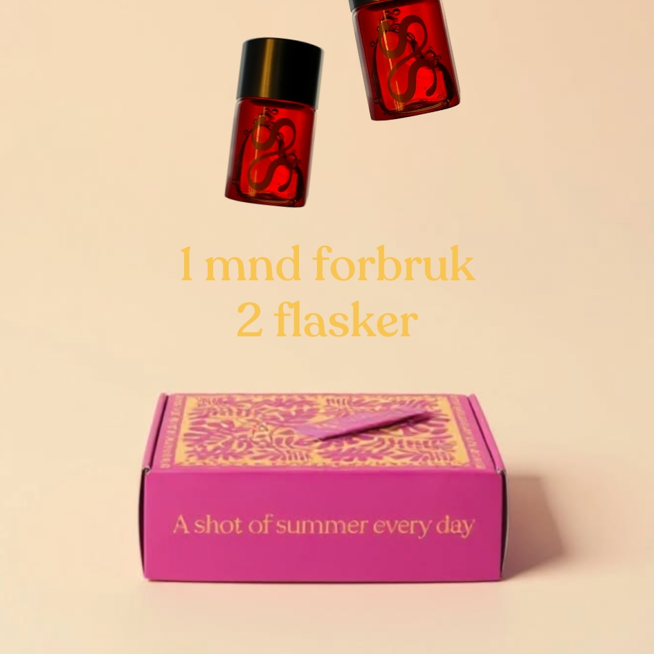 Brun uten sol betakaroten shot og vitaminsbooster for hud, hår, negler og generell velvære. Vi vet at sommeren ikke varer evig – derfor laget vi Summershot. En liten flaske fylt med sol, smak og feriefølelse. Laget med kraftfulle antioksidanter, vitaminer og naturlige ingredienser. Utviklet for å fremme en frisk, gyllen glød.